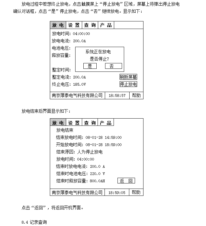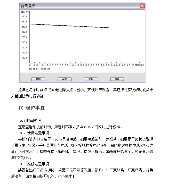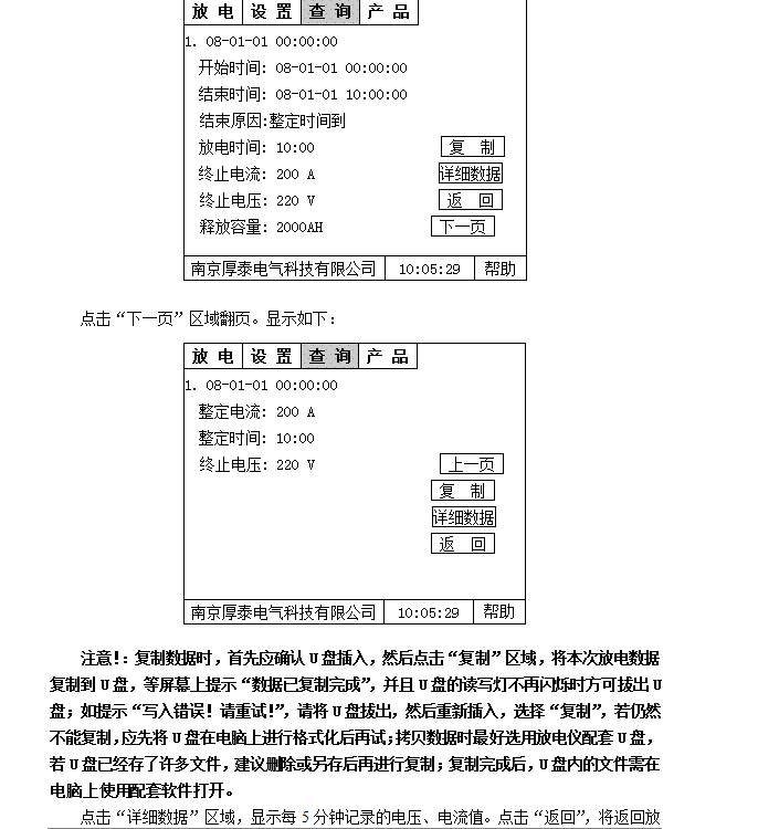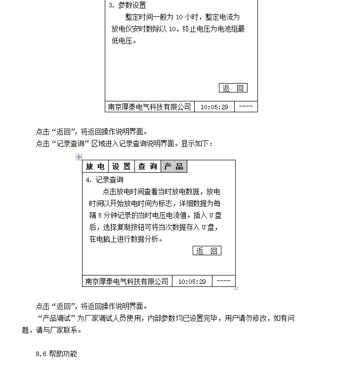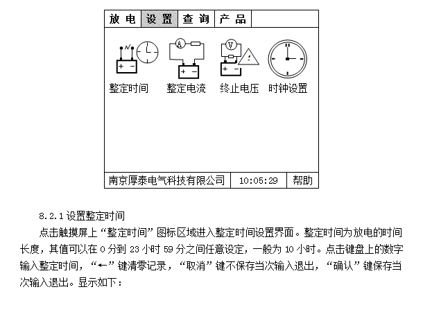 5.4 實(shí)時顯示放電電流、電池電壓、放電時間、釋放容量、實(shí)時時鐘、整定值信息。