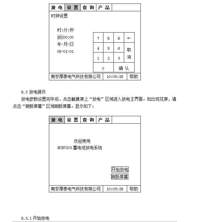 設(shè)置—設(shè)置放電參數(shù)及時鐘;
